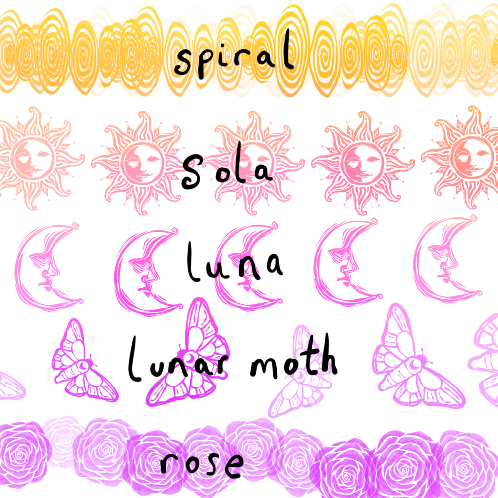 15 procreate brushes, including hand drawn stamps and textures brushes for painting.